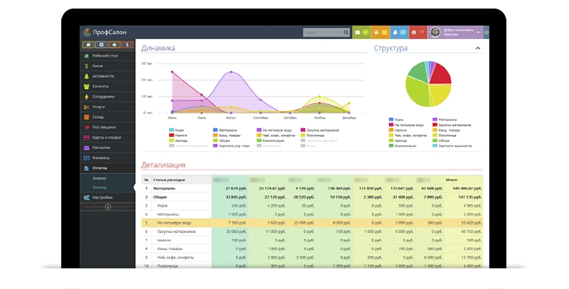 Также в ПрофСалоне есть бесплатная управленческая панель, ведение плана и сквозной поиск показателей в отчетах».